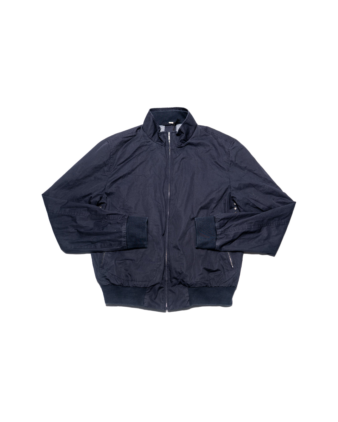 Giacca Burberry Brit da uomo, colore blu navy, modello Harrington/Bomber, chiusura a zip e iconica fodera check all’interno. Vestibilità regolare, ideale per look casual e mise più eleganti. Stagione e produzione 2012-2016, periodo d’oro della linea Burberry Brit.